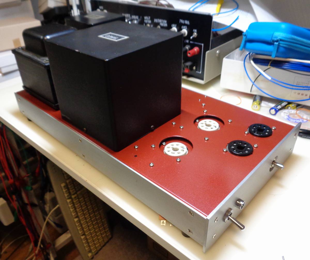 このアンプは、実は20年以上前にシャーシの穴あけを済ませてあり、CRパーツも揃え、あとは配線するだけの状態だったが、ある理由で延び延びになっていたものだった。